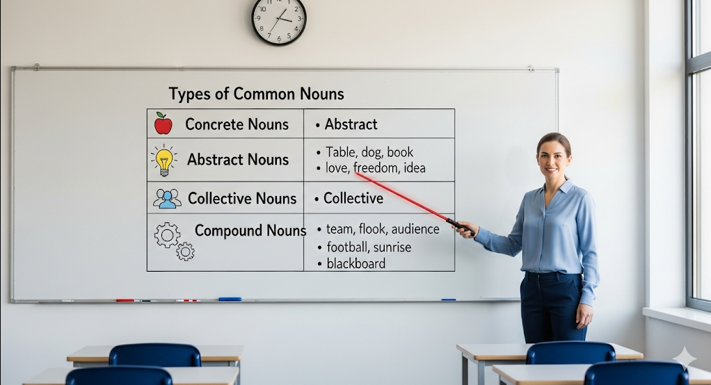 समान्य संज्ञाओं के प्रकारों को पहचानना आपको उनके उपयोग को समझने में मदद करता है और आपके कुल संचार कौशल में सुधार करता है, चाहे वह लिखित हो या मौखिक रूप में।