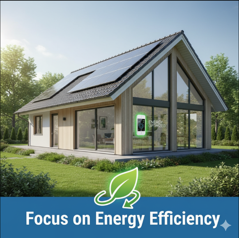 When choosing materials, opt for sustainable materials like bamboo flooring or recycled countertops to further enhance your home’s efficiency. Proper insulation and energy-efficient windows are also essential, as they prevent heat loss, keeping your home cozy year-round.