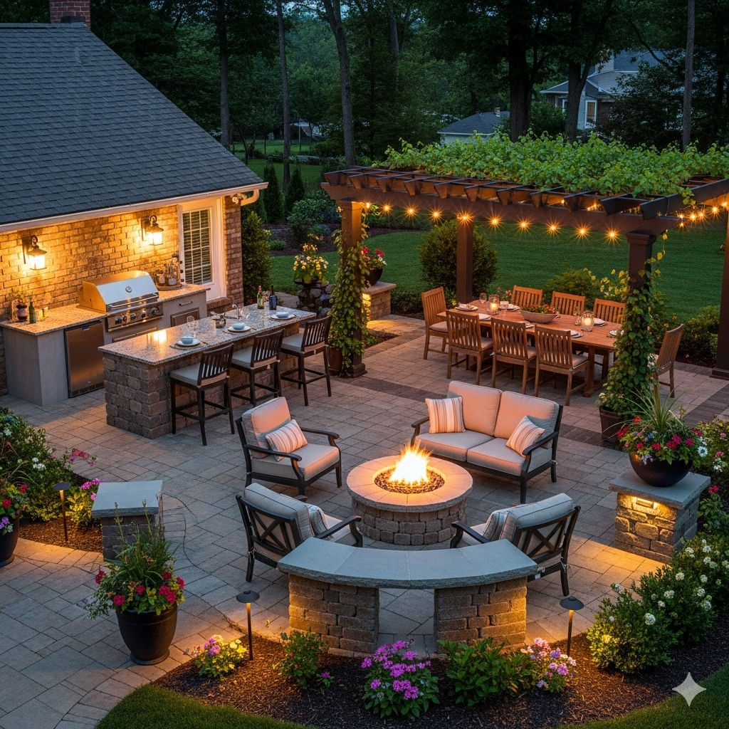 As you step outside, imagine your outdoor space transformed into an entertaining oasis that draws friends and family together for unforgettable gatherings. Picture a sleek outdoor kitchen, complete with a grill and bar seating, where culinary delights come to life. Surround it with a cozy fire pit, perfect for evening conversations under the stars.